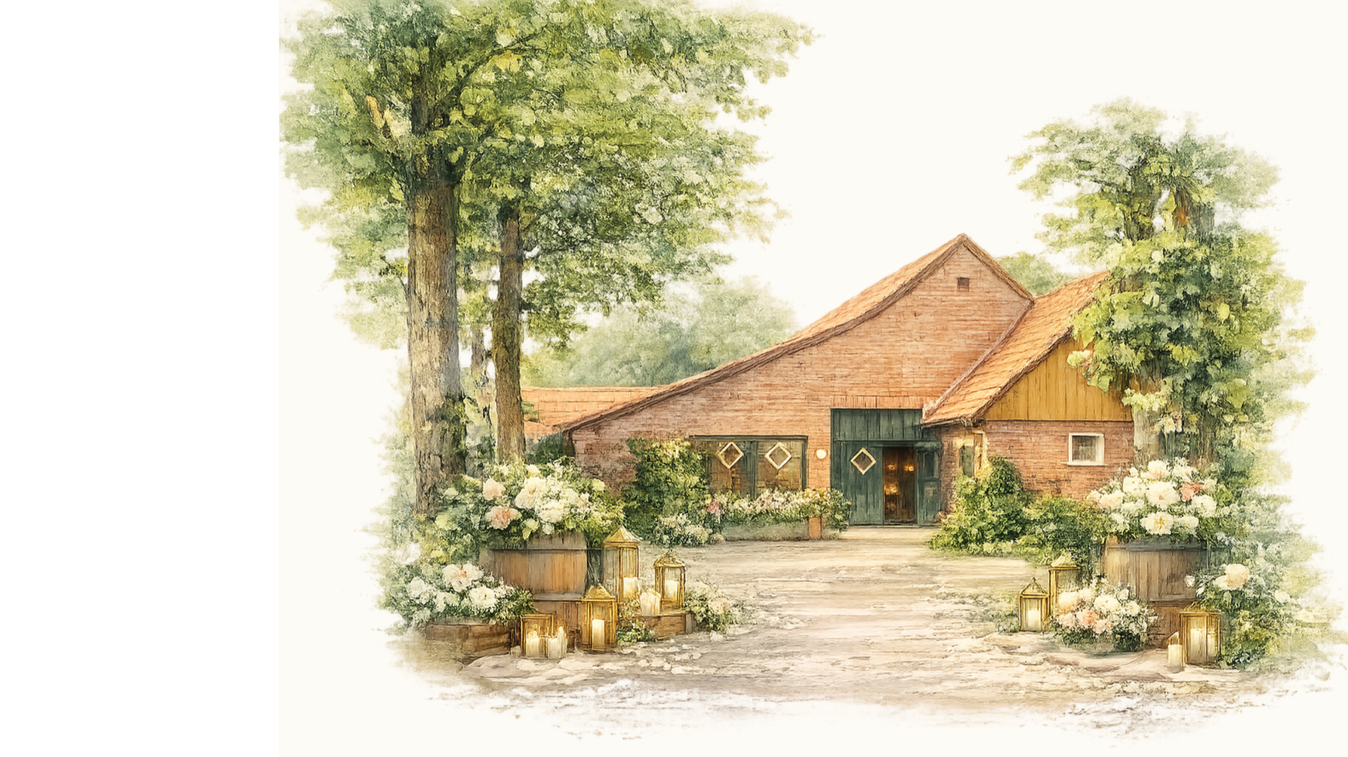 Anschließend feiern wir auf einem charmanten Bauernhof in Miriams Heimatdorf. Weite Felder, funkelnde Lichter und genug Platz, um zu tanzen, als würde niemand zuschauen.